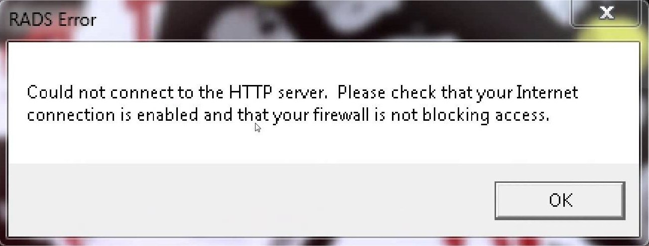 RADS Error: Could not connect to the HTTP server в League of Legends: методи рішення Помилка RADS Error: Could not connect to the HTTP server є самим що ніКорисні поради