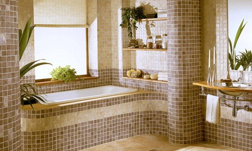Облицювання ванни мозаїкою із скла та кераміки Оздоблення ванних кімнат передбачає не тільки естетику і красу, але і практичність обробки, якаВанна кімната