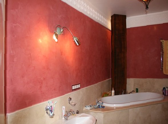 Якою фарбою пофарбувати стіни у ванній кімнаті, рекомендації Покриття стін у ванній кімнаті фарбою є бюджетним варіантом за рахунок відносно низької ціниВанна кімната