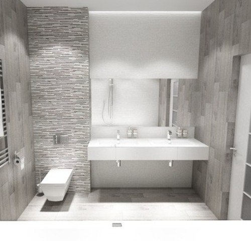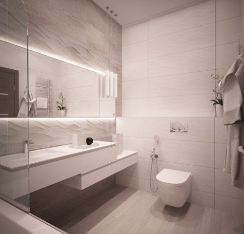 Суворе, але красиве оформлення суміщеного санвузла Використовуючи тільки сірий і білий відтінки можна створити дуже цікавий дизайн для санвузла, якийВанна кімната