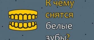 Що означає сон про білі зуби у себе або іншої людини — 24 тлумачення Коротко про головне Білі зуби сняться до цікавих зустрічей і знайомств із новими друзями.Сонник
